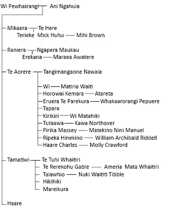 married his cousin, Rakaimoehau. They had many children. Tangihaere and his family then ventured north to Whareponga. There he laid claim to large sections of land that had belonged to his forefathers. On this land Ngati Ruanuku had also settled and they remained in peaceful occupation with Tangihaere and his family. Their neighbours (south of them at Waikawa) were a section of Wahine-iti. And so it was among Ngati Ruanuku and Te Wahine-iti that Tangihaere’s family came to live.